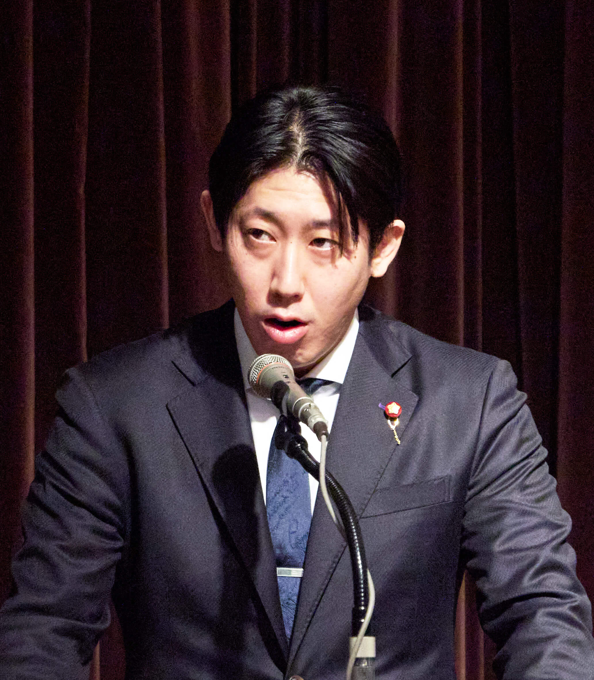 来賓紹介で武田良太衆議院議員より、「選挙を通じて、人様の心の温かさ、優しさや力強く支えて頂くという気持ちに接する機会がありました。政治家として果たさなければならない役割がありますが、人様を思いやる、大事にするという気持ちは、どのような思想や信条があろうとも忘れてはならないことだと思います。今日まで皆さまは同和問題にご尽力されておられますが、インターネットを含めて卑劣な行動をする方が、日本のみならず世界中にいます。誰かがこの運動を展開しなければ、卑劣な行為が飛散拡大してゆく可能性があります。その抑止力として、全日本同和会の皆様には今後も一層の活躍をして頂きたいと思います。」との祝辞を賜りました。